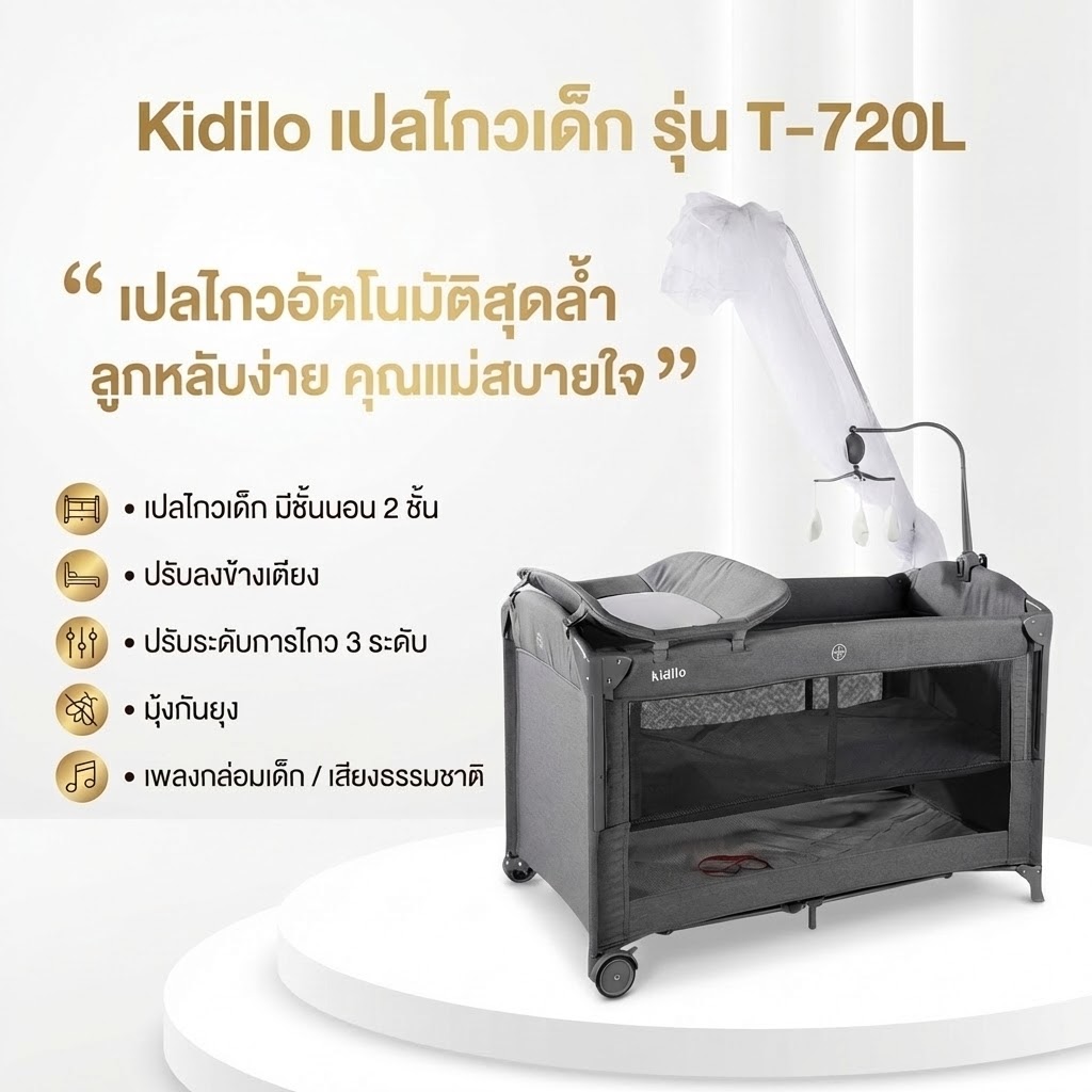 Kidilo เตียงนอนเด็กแรกเกิด 2 in 1 รุ่น T-702L คือนวัตกรรมเครื่องนอนที่ออกแบบมาเพื่อตอบโจทย์คุณแม่ยุคใหม่ที่ต้องการความใกล้ชิดกับลูกน้อยในยามค่ำคืนควบคู่ไปกับความปลอดภัยสูงสุด การนอนหลับที่มีคุณภาพคือรากฐานสำคัญของพัฒนาการทารก โดยเฉพาะในช่วง 6 เดือนแรกที่ลูกน้อยต้องการการดูแลอย่างใกล้ชิด เตียงนอนรุ่นนี้จึงรวมเอาฟังก์ชันเตียงชิดเตียงแม่ (Co-sleeping) และเปลไกวกล่อมเด็กเข้าไว้ด้วยกันอย่างลงตัว ทำให้รุ่น T-702L กลายเป็นไอเทมที่ได้รับความนิยมสูงสุดในปี 2026 นี้