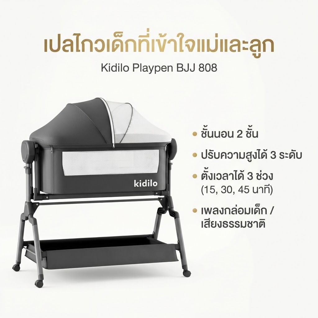 Kidilo BJJ808 เปลไกวไฟฟ้าอัจฉริยะ ตัวช่วยคุณแม่ยุคใหม่ หลับสนิท ปลอดภัย